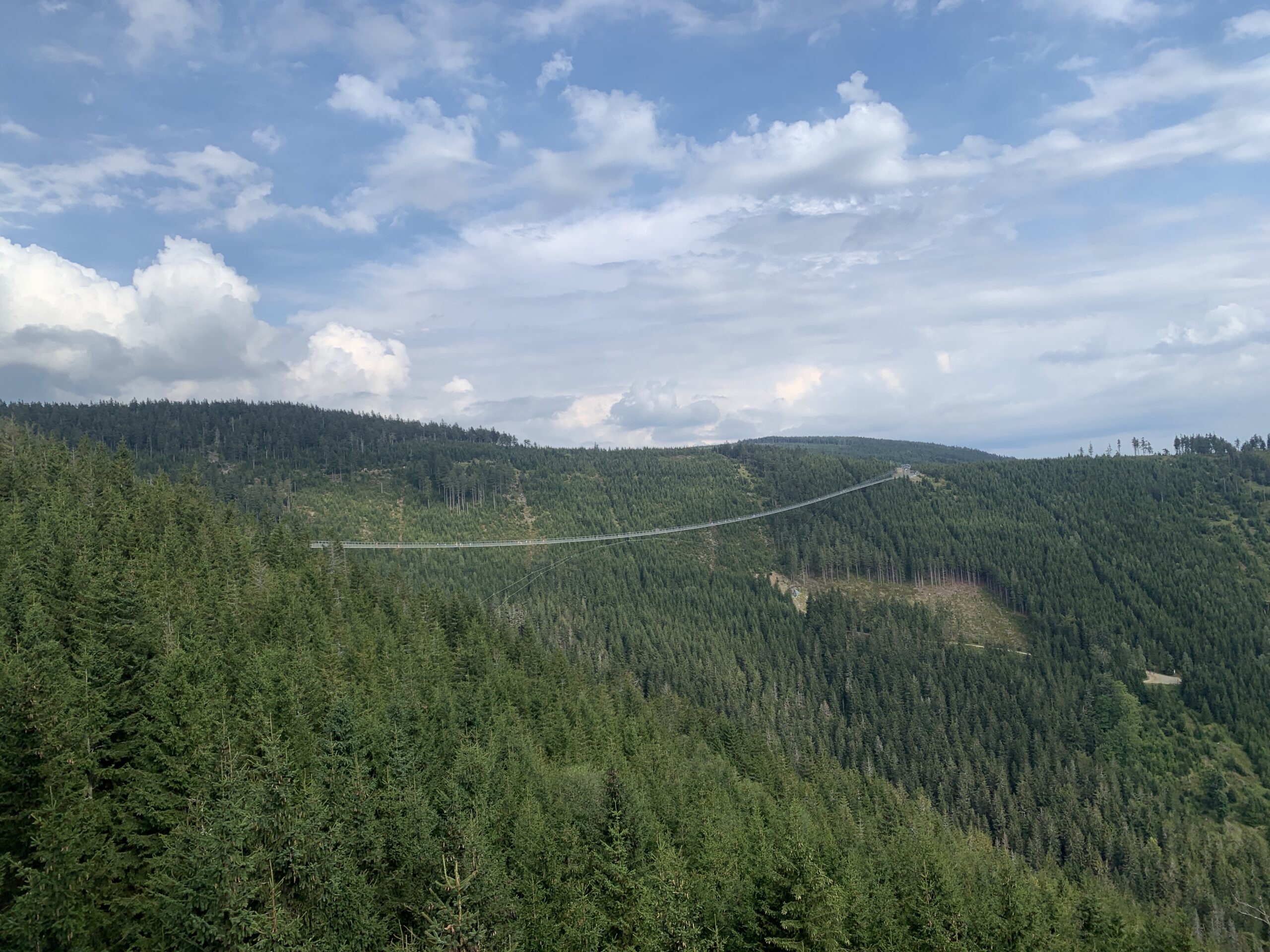 Most jest położony 95 metrów nad doliną i łączy schronisko Slaměnka na zboczu szczytu Slamník (1232 m n.p.m.) ze zboczem góry Chlum (1118 m n.p.m.). Trasa jest jednokierunkowa. Została ona otwarta 13 maja 2022. Niedaleko tej kładki znajduje się również tzw. „ścieżka w obłokach” o długości 710 m. Jest to „ślimakowa” wieża widokowa, osiągająca 55 m nad ziemią. (Nawiasem mówiąc podobna jak u nas w Krynicy. Nasza jest 6 metrów niższa, ale za to ponad kilometr dłuższa! Słowacy też mają taką swoją w Bachledowej Dolinie w Tatrach. Jest ona jednak mniejsza. A my mamy jeszcze inne np. „Brama w Gorce” w Waksmundzie koło Nowego Targu). Obie atrakcje udało nam się „zaliczyć”, choć trochę trzeba było się „nachodzić” tego dnia. Dla tych co chcieli by to zobaczyć przydatna wskazówka: warto kupić bilety przez internet, bo znacznie taniej.